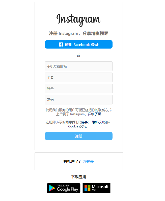 注册 Instagram 账号