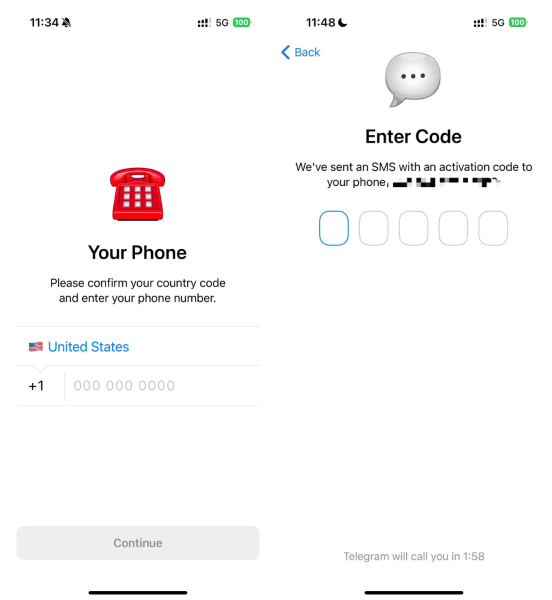- 输入手机号,选择国家区号(例如中国 +86)。