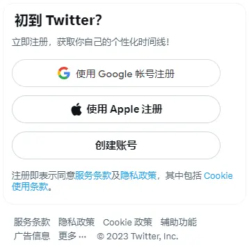 - 打开 twitter.com,点击右侧“创建账号”或底部蓝色条中的“注册”按钮。
