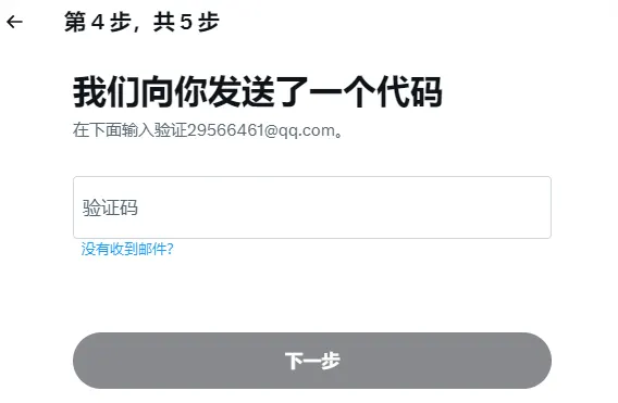 - 系统会向邮箱发送验证码,输入验证码后点击“下一步”。